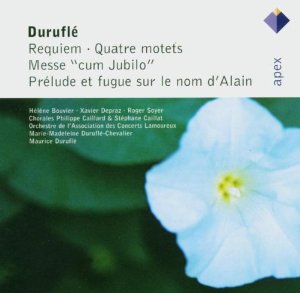 This recording is important as the only document of Durufle’s conception of his Requiem. He preferred the full orchestra version, which this is, and chose the mezzo soprano Helene Bouvier for the Pie Jesu. There are several iterations of this recording, the one pictured above and others. I would suggest looking for one on the Erato label since the Apex disc apparently has the digital anti-copying code and will not scan for uploading to your computer.
